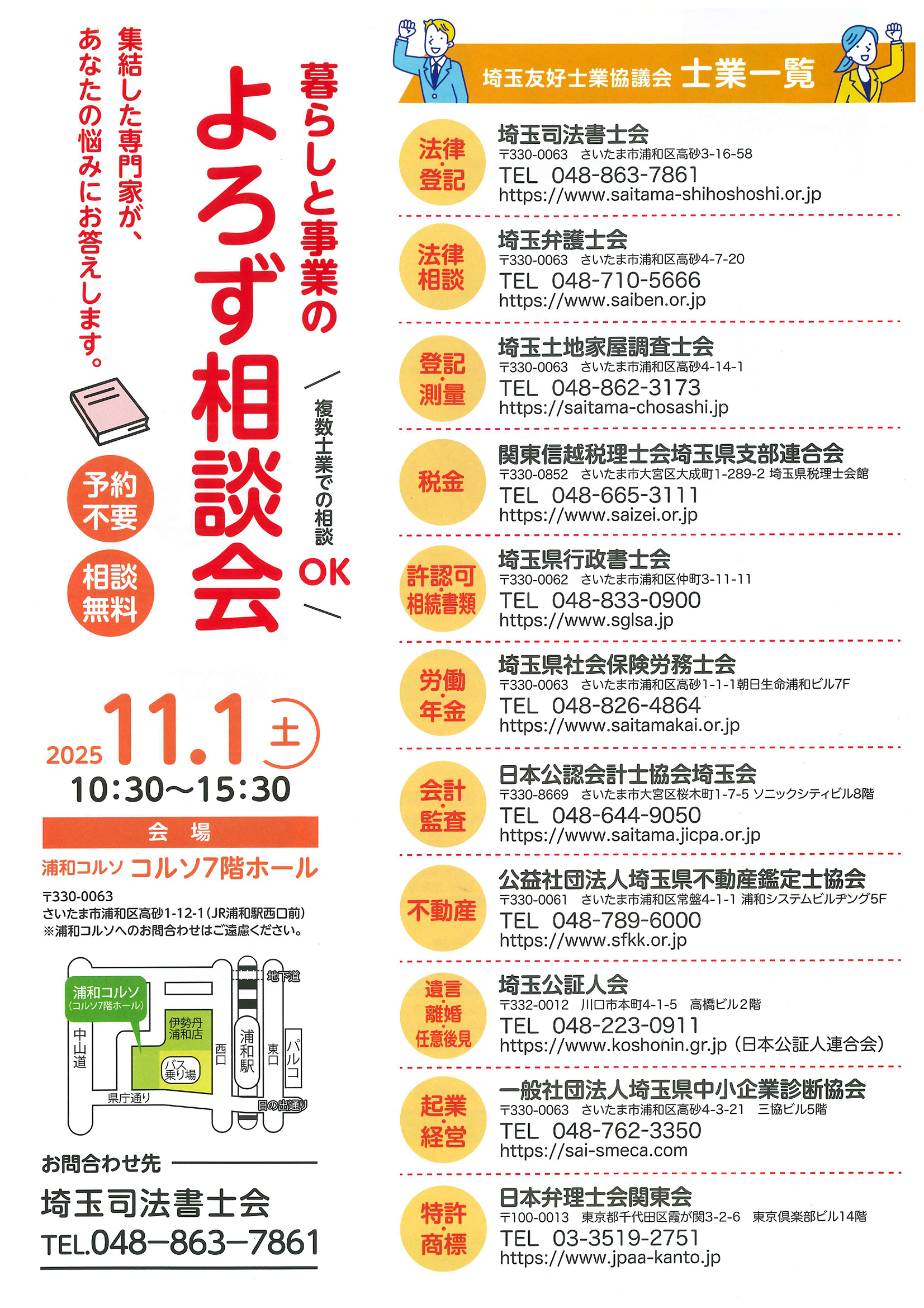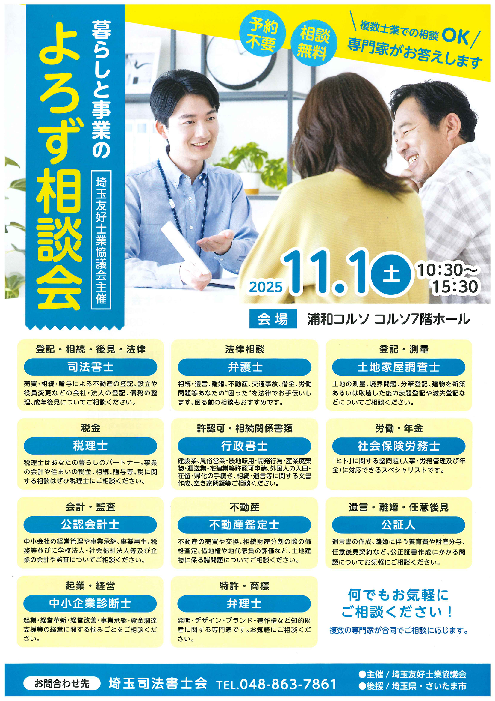 『暮らしと事業のよろず相談会を開催します(主催:埼玉県友好士業協議会)』